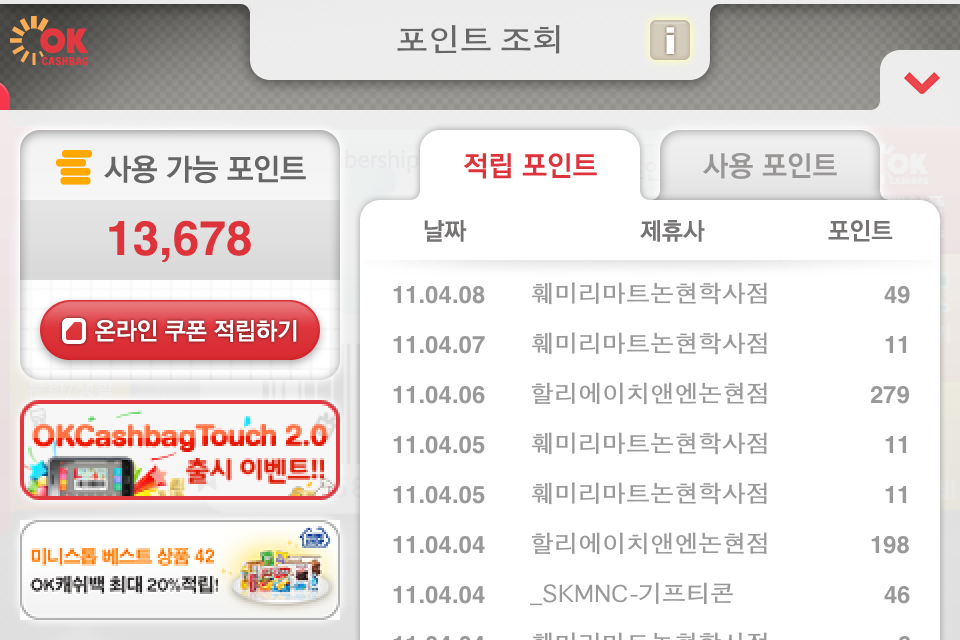 ■ 프로젝트명 – OK캐쉬백 Touch 2.0