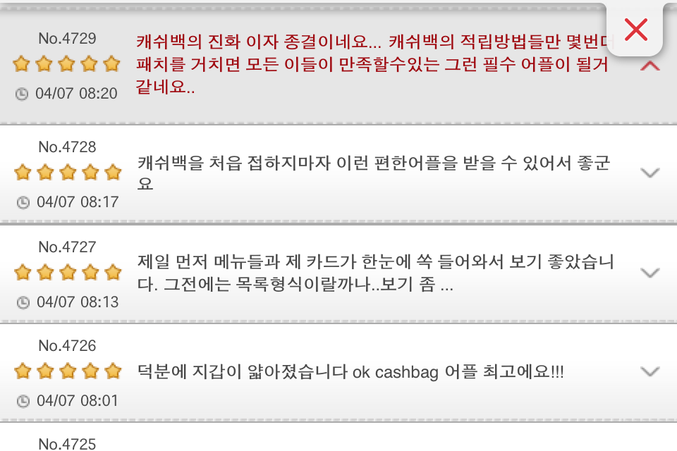 “덕분에 지갑이 얇아졌습니다 ok cashbag 어플 최고에요!!!”,