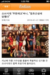 스타연예뉴스는 서울신문NTN이 제공하는 모바일 뉴스 서비스입니다. 매거진 스타일의 주요 뉴스와 함께 연예, IT/게임의 실시간 뉴스가 업데이트 되며, 주요 기사 이외에 포토 뉴스가 함께 제공됩니다. iPhone/iPod Touch 3.x 버전에서 정상작동되며 Wi-Fi모드와 3G 모드에서 동일하게 어플리케이션에 최신 기사들이 다운로드 됩니다. 향후, 가로보기 모드, 검색 기능 등의 부가 기능과 연예포토 뉴스를 아이폰에 다운로드 하여 바탕화면을 사용할 수 있는 기능도 제공될 예정입니다. 감사합니다.Star Entertainment News is a mobile news service provided by Seoul Shinmun NTN. It’s contents, ranging from entertainment to games and IT, are updated in real time and delivered in magazine-style format along with photo-centric news. It is designed for the iPhone and iPod Touch 3.x, and will run smoothly in either Wi-Fi or 3G mode whether you are downloading the app or new articles. Functions such as landscape mode, search and downloading of photo news to use as backgrounds are planned in the near future, so stay tuned.