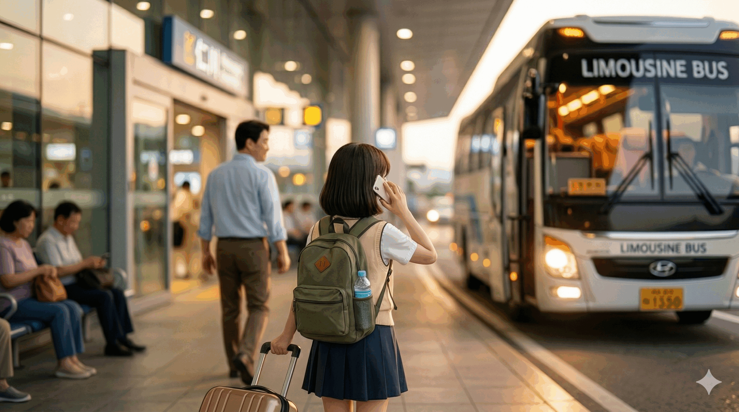 딸과 오사카 여행에서 돌아오던 날, 인천에서 집 근방으로 향하는 리무진 버스를 기다리고 있었다. 3~4명의 무리가 우리 앞쪽에 있었고 뒤쪽에는 10명이 넘는 인원들이 줄지어 기다리고 있었는데, 리무진 버스 도착 몇 분 전에 나는 잠시 화장실을 다녀오겠다며 딸을 두고 공항으로 다시 들어 갔었다. 화장실을 나와서 바로 앞 게이트로 향하는 내게 딸의 전화가 울렸다.